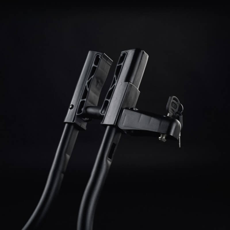 Ανανεωμένο σύστημα στερέωσης , οι σφιγκτήρες πλαισίου έχουν ένα νέο σχέδιο που αποτρέπει την ολίσθηση του ποδηλάτου ακόμη και αν δεν έχει επιτευχθεί πλήρως η βέλτιστη ροπή. Επιπλέον, το νέο κουμπί ρυθμίζει και απελευθερώνει το ποδήλατο σε μία κίνηση.