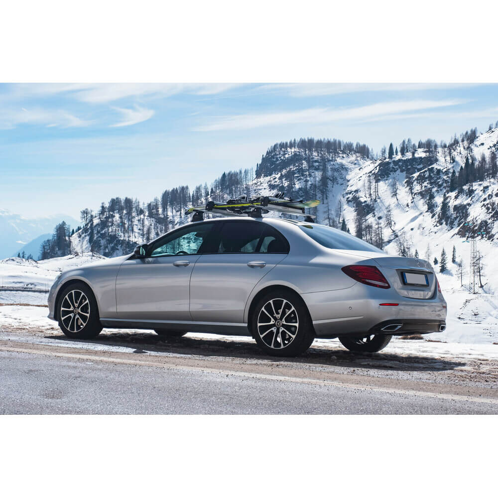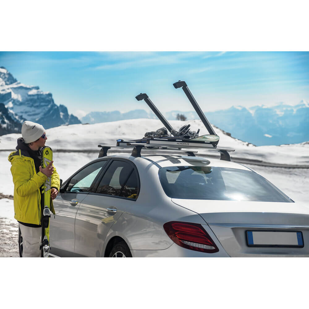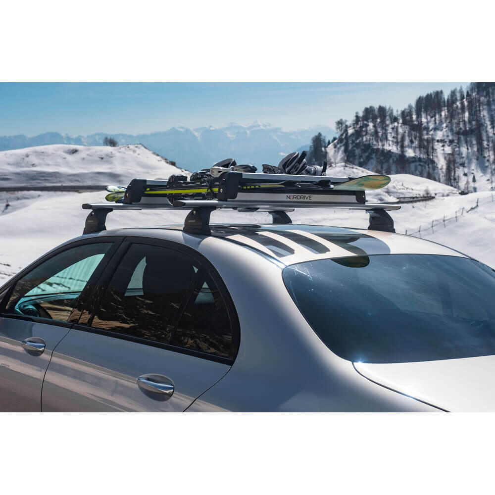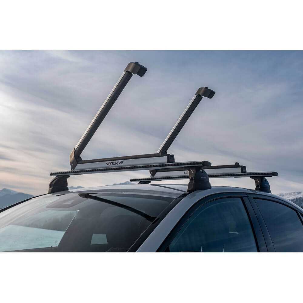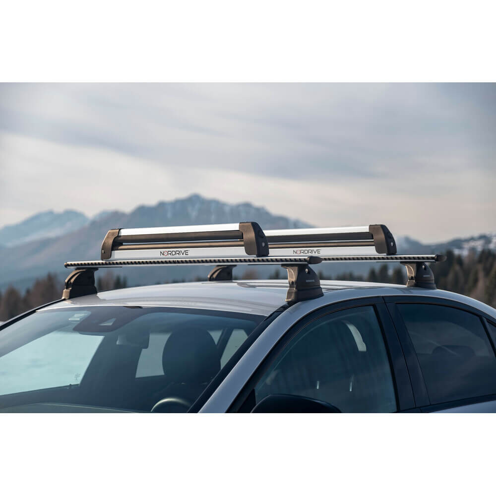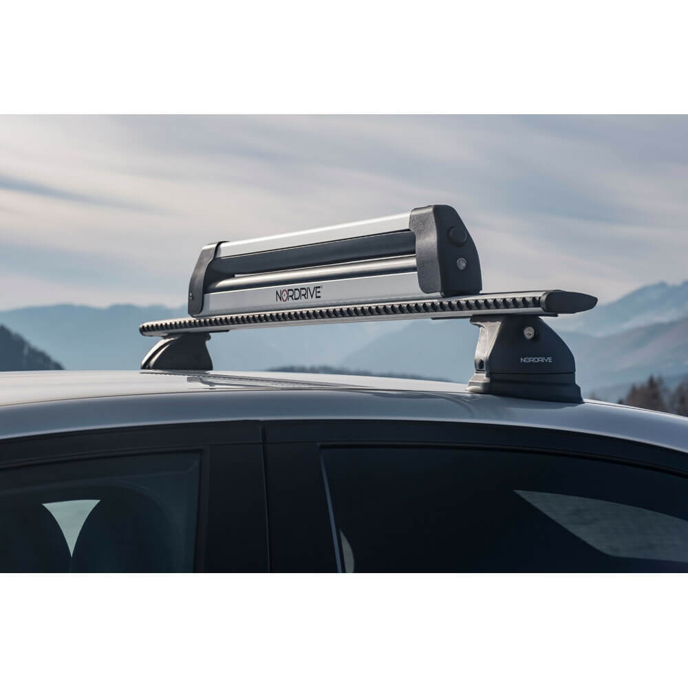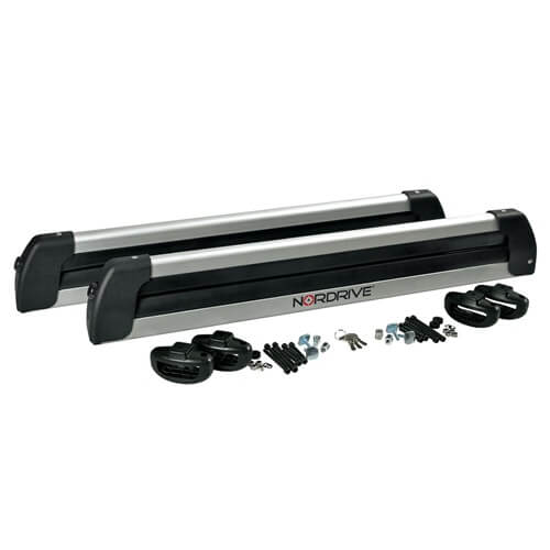 Βάσεις οροφής αλουμινίου για 6 ζευγάρια σκι ή 4 snowboards. Το προιόν συμπεριλαμβάνει αντικλεπτικό σύστημα με κλειδί. Η βάση τοποθετείται απευθείας σε μπάρες αυτοκινήτου με σύστημα T-Style (συμπεριλαμβάνεται στη συσκευασία) ή εξωτερικά με βίδες μέσω κλειστών βραχιόνων σε απλές σιδερένιες μπάρες οροφής αυτοκινήτου. Κατασκευασμένες από EPDM καουτσούκ, υλικό εξαιρετικής αντοχής στη θερμότητα,στο όζον και στις καιρικές συνθήκες. Επιπλέον, έχει εξαιρετική πρόσφυση και καλη συμπεριφορά σε πολικές συνθήκες και στην υγρασία. Πληροί όλες τις απαραίτητες προδιαγραφές ασφαλείας. Διαθέσιμη σε δύο μεγέθη (κωδικός προιόντος: N40010 NORDIC-KING NK-40). Παρέχετε δυνατότητα αύξησης του διάκενου (κενό) ανάμεσα στην οροφή του αυτοκινήτου και της βάσης του σκι στα 38mm με κωδικό προιόντος: N40050.